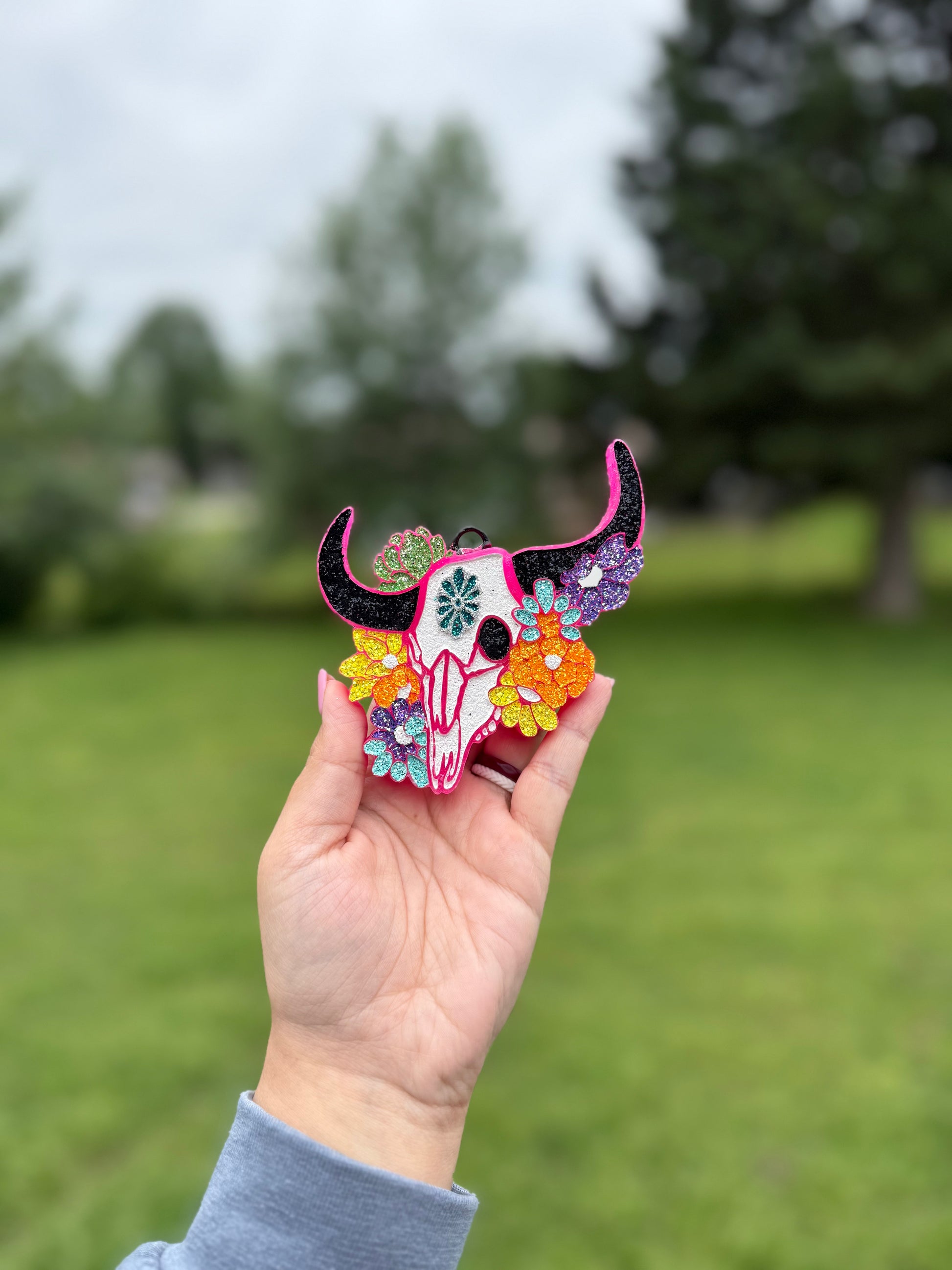 Floral Bull Skull Car Freshie